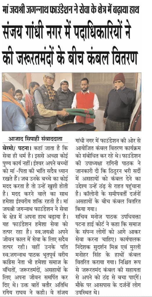 Maa Jai Shree Jagannath Foundation, Ramprawesh Bhawan, C/O- Swa Jagannath Pathak, Road No.-3, Sanjay Gandhi Nagar, Kali Mandir Road, Hanuman Nagar, Post- Lohiya, Dist- Patna(Bihar), Pin-800020